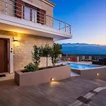 Η Upper View Villa, With Private Pool Χανιά απέχει περίπου 10 λεπτά οδικώς από το Λιμάνι της Σούδας και διαθέτει βεράντα με θέα στο βουνό.